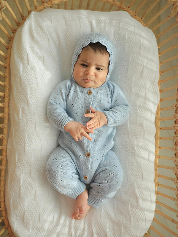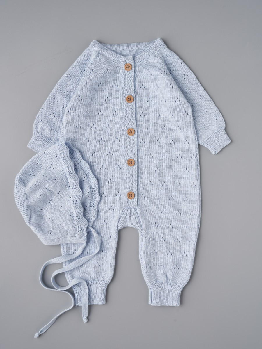 Комбинезон и чепчик Little Star (вязаный хлопок) 80376 (ЧЗ-мз) голубой 62