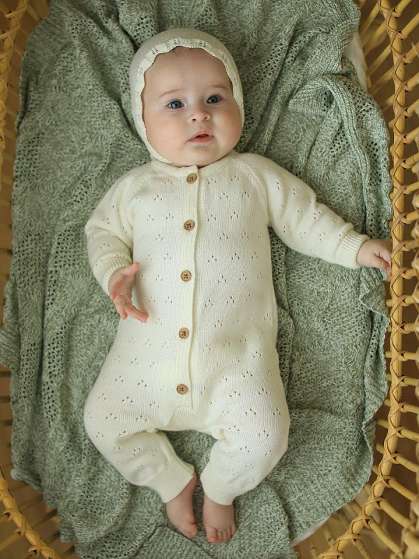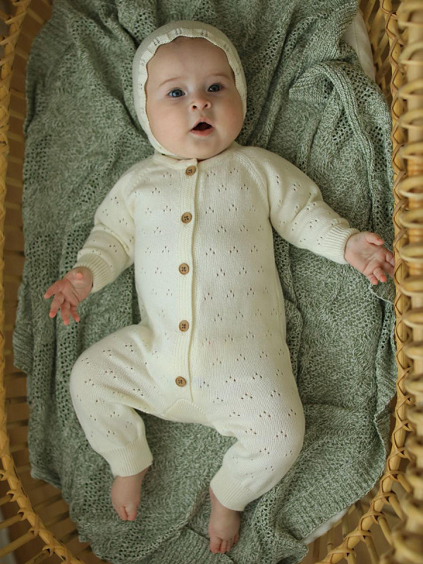 Комбинезон и чепчик Little Star (вязаный хлопок) 80376 (ЧЗ-мз) крем 62
