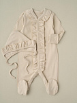Комбинезон и чепчик с рюшами Little Star 32083 (ЧЗ-мз) серо-бежевый 62