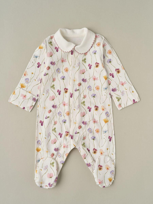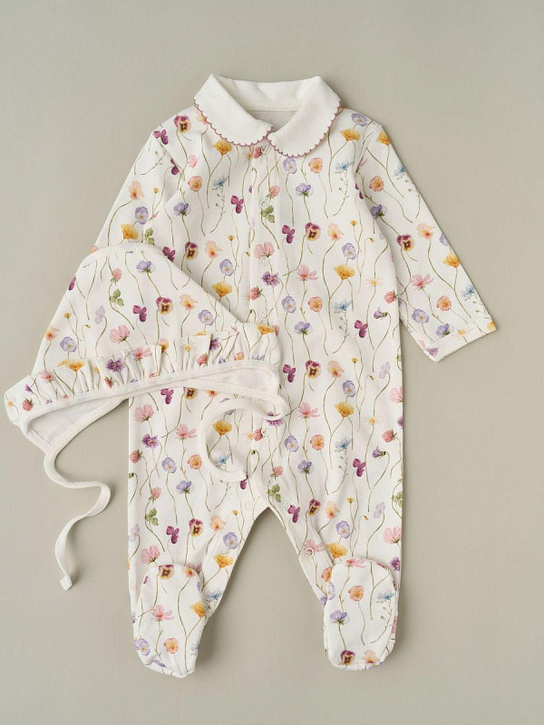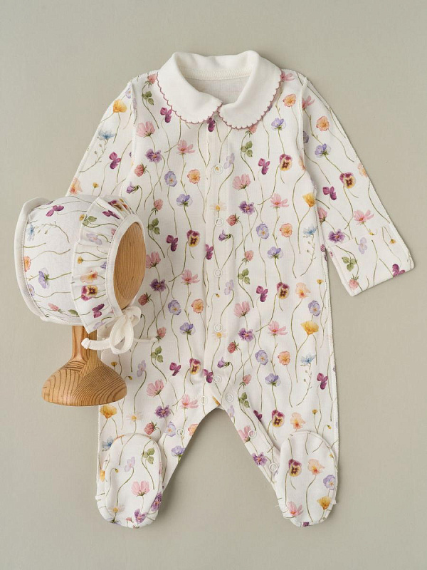 Комбинезон и чепчик с рюшей Little Star Фиалки (интерлок) 31834 (ЧЗ-мз) кремовый 62