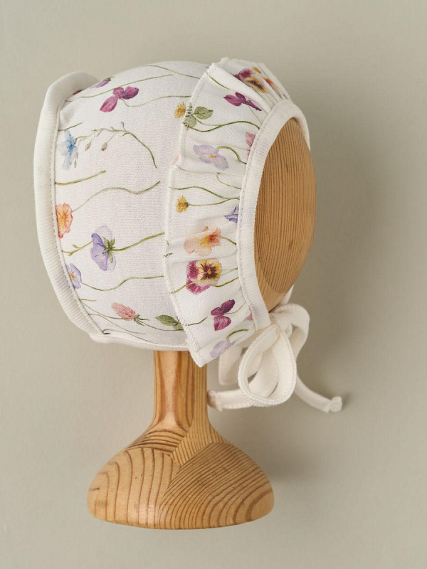 Чепчик из хлопка с завязками: бережно фиксируется, дополняет образ; отличный подарок новорождённому.
