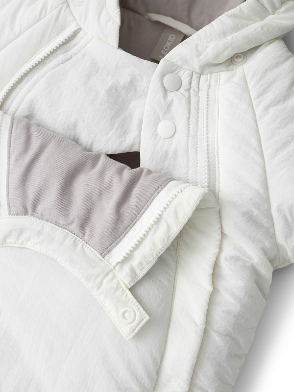 - ткань верха с водооталкивающей пропиткой - в комплекте с пристегивающимися пинетками - удобная двойная застежка-молния спереди - мягкая хлопковая подкладка внутри - капюшон на хлопковой подкладке - специальная отворачивающаяся манжета для утепления рук - легкий утеплитель внутри(80г/м2)