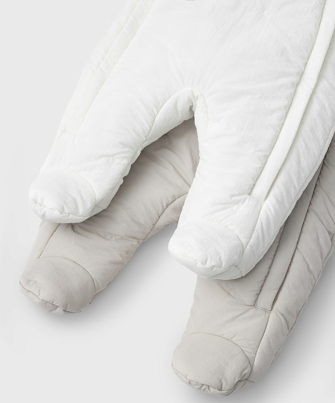 - ткань верха с водооталкивающей пропиткой - в комплекте с пристегивающимися пинетками - удобная двойная застежка-молния спереди - мягкая хлопковая подкладка внутри - капюшон на хлопковой подкладке - специальная отворачивающаяся манжета для утепления рук - легкий утеплитель внутри(80г/м2)