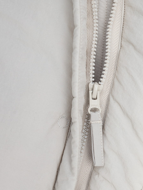 Модель имеет материал с водоотталкивающей пропиткой, легкий утеплитель, трикотажную подкладку, две молнии спереди для удобства надевания и капюшон с утяжкой на резинке.
