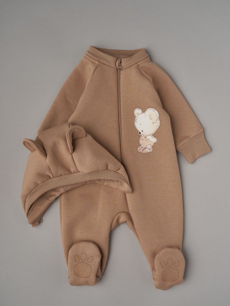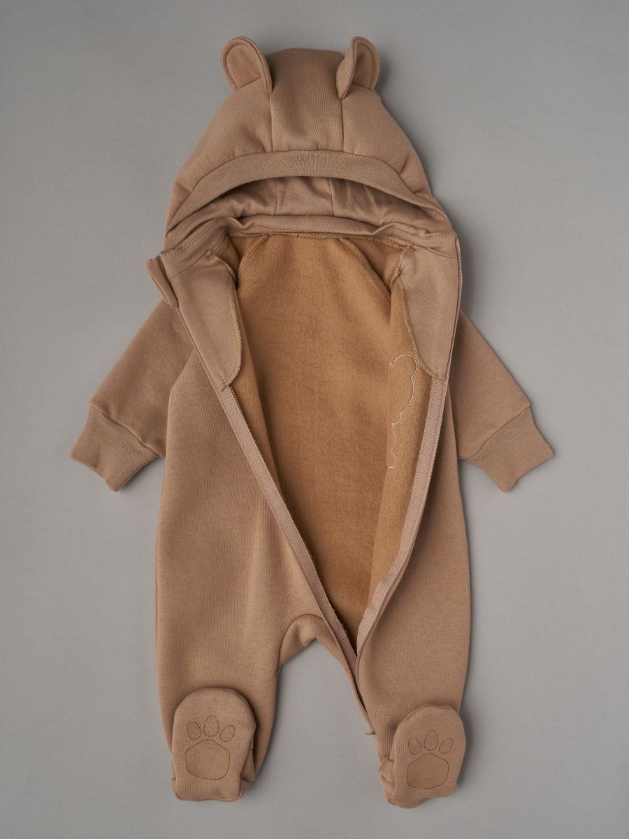 Комбинезон Little Star Мишка Малыш с отстегивающимся капюшоном футер с начесом 823015 (ЧЗ-мз) бежевый 62