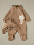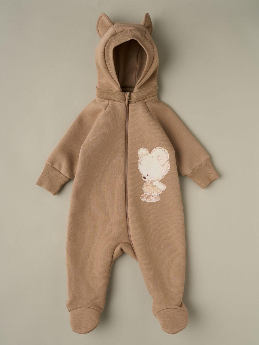 Комбинезон Little Star Мишка Малыш с отстегивающимся капюшоном футер с начесом 823015 (ЧЗ-мз) бежевый 74