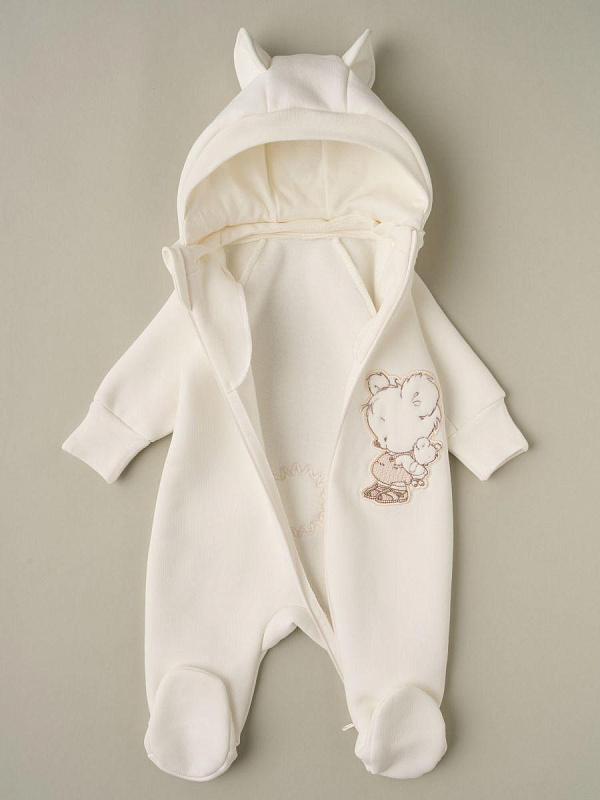 Комбинезон Little Star Мишка Малыш с отстегивающимся капюшоном футер с начесом 823015 (ЧЗ-мз) кремовый 62