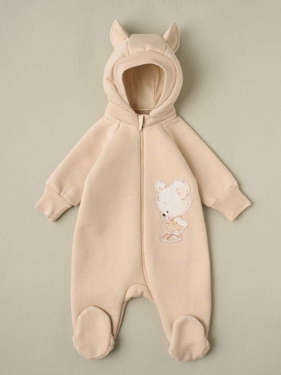 Комбинезон Little Star Мишка Малыш с отстегивающимся капюшоном футер с начесом 823015 (ЧЗ-мз) светло-бежевый 62