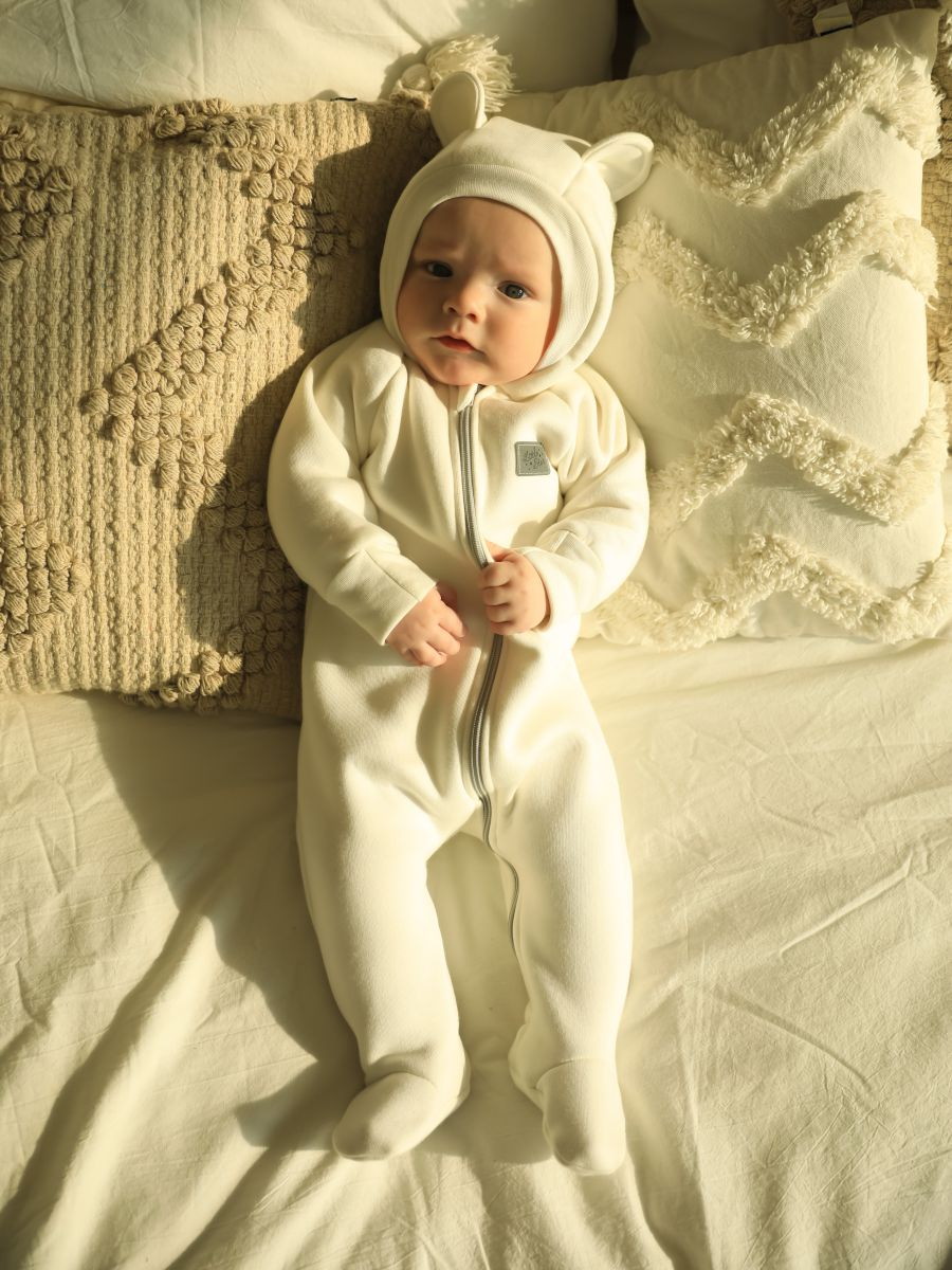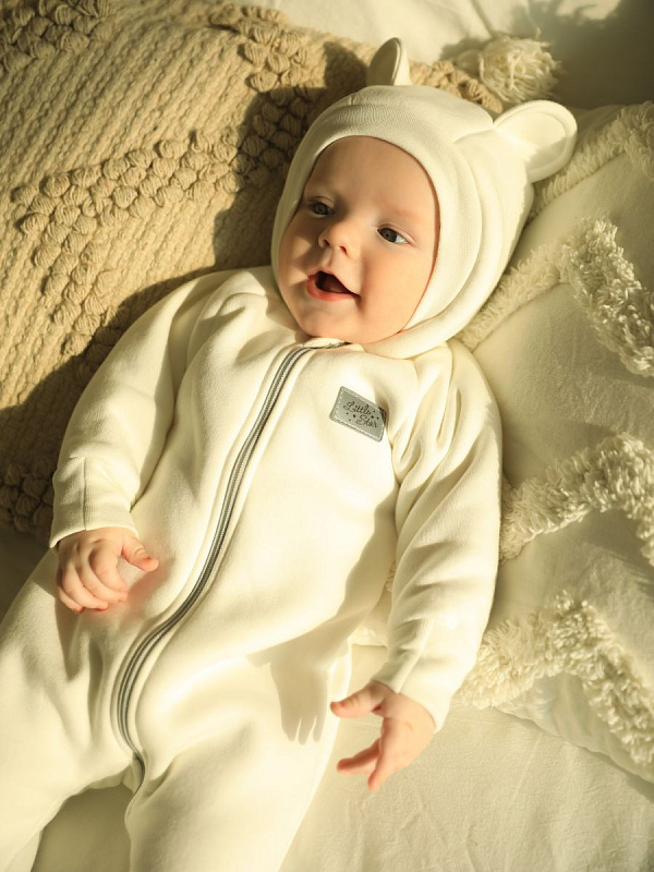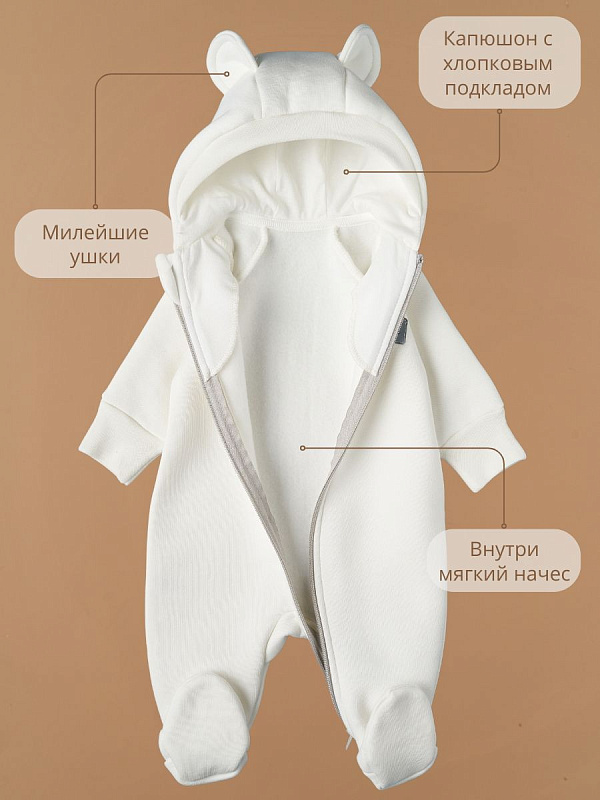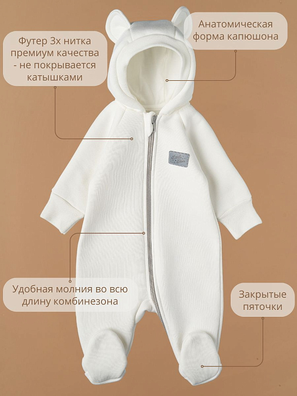 Комбинезон Little Star Мишка с капюшоном футер с начесом 30321 (ЧЗ-мз) крем 68