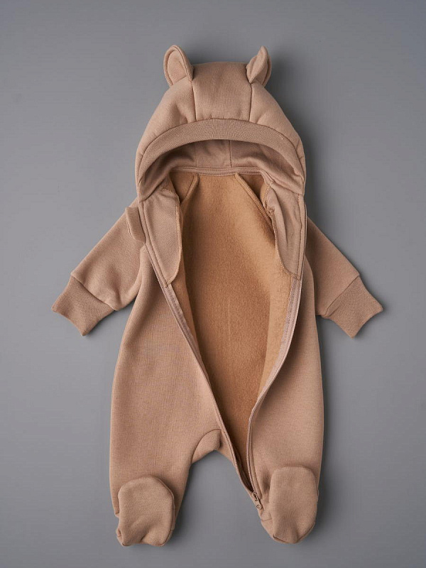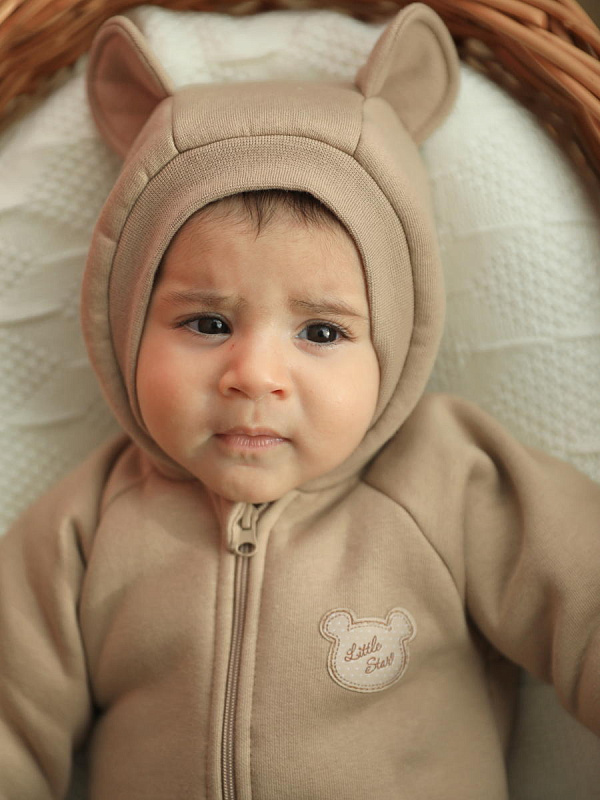 Комбинезон Little Star Мишка с капюшоном футер с начесом 30321 (ЧЗ-мз) темно-бежевый 62