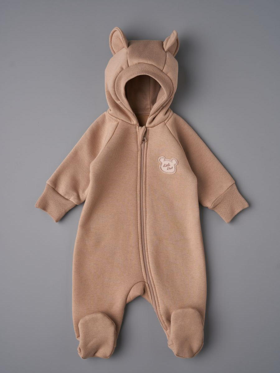 Комбинезон Little Star Мишка с капюшоном футер с начесом 30321 (ЧЗ-мз) темно-бежевый 74
