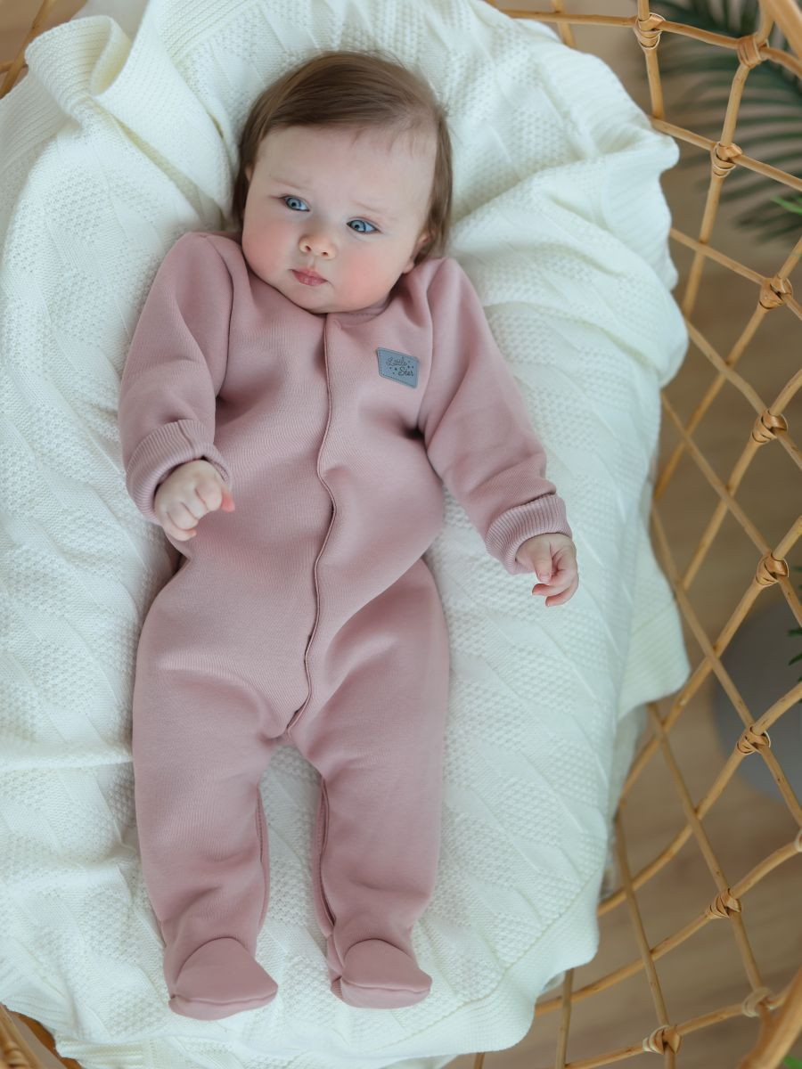 Комбинезон Little Star на кнопках из футера с начесом 2335 (ЧЗ-мз) пудровый 68