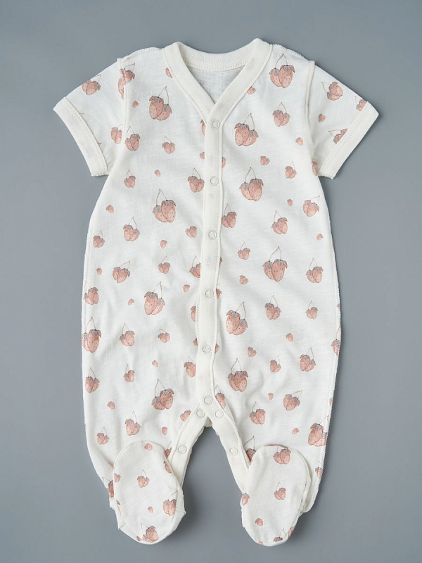 Комбинезон Little Star на кнопках короткий рукав 2 шт. 7062 клубнички, цветы и птички, крем/розовый 56Нет оценокХарактеристики