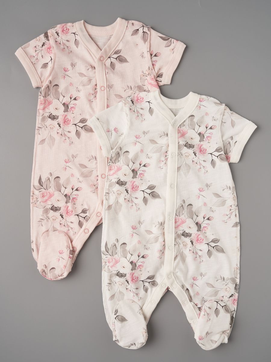 Комбинезон Little Star на кнопках короткий рукав 2 шт. 7062 цветы, крем/розовый 62