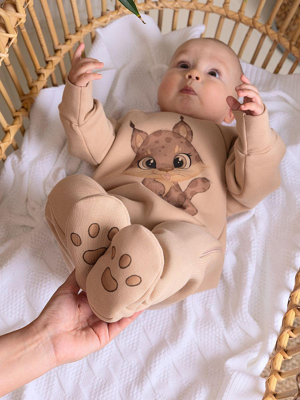 Комбинезон Little Star Рысенок из футера с начесом 83045 (ЧЗ-мз) бежевый 56
