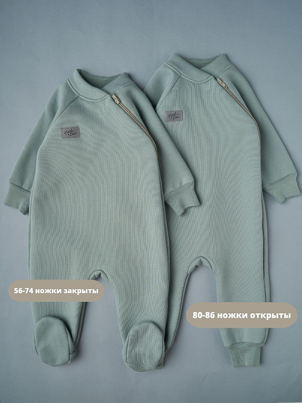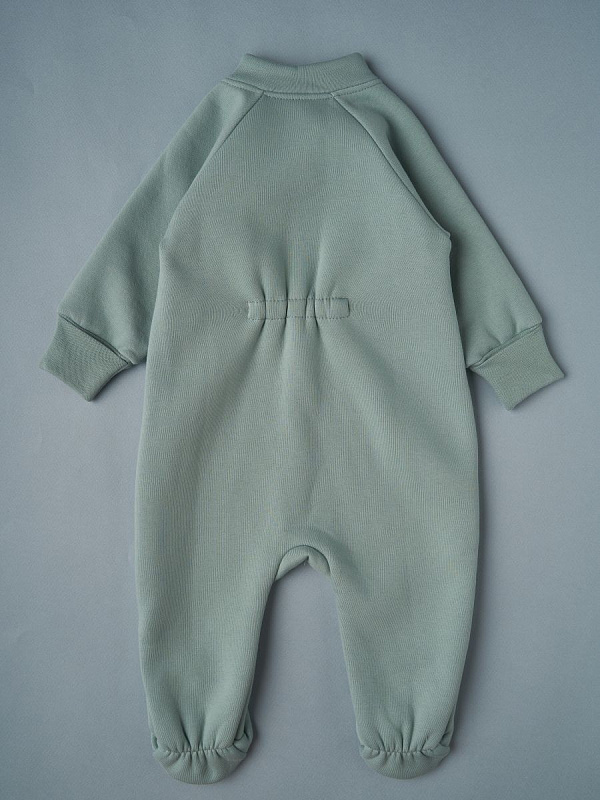 Комбинезон выполнен из ткани трикотаж футер 3х нитка с начесом - гладкий снаружи и теплый, мягкий внутри.