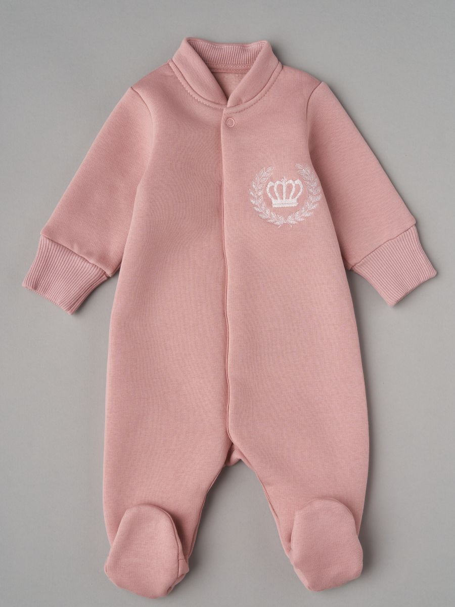 Комбинезон Little Star со стойкой на кнопках 2335 герб корона, пудровый 74