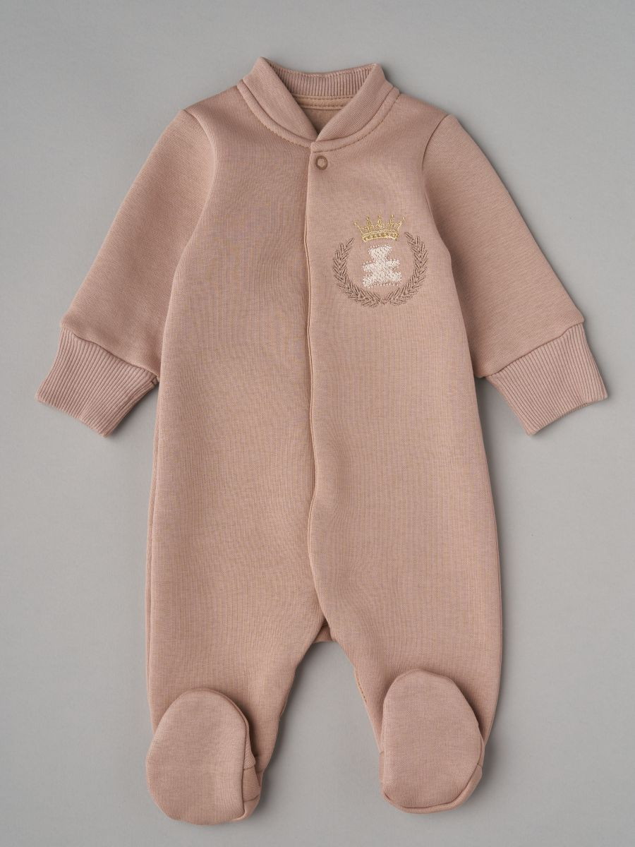 Комбинезон Little Star со стойкой на кнопках 2335 герб мишка, бежевый 56