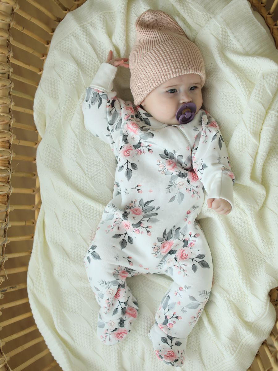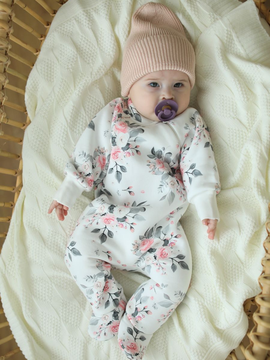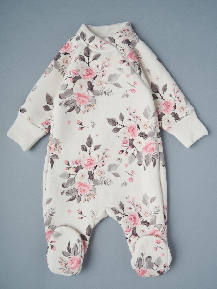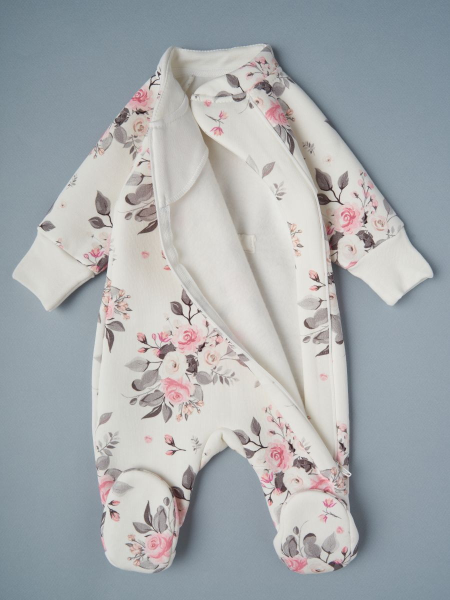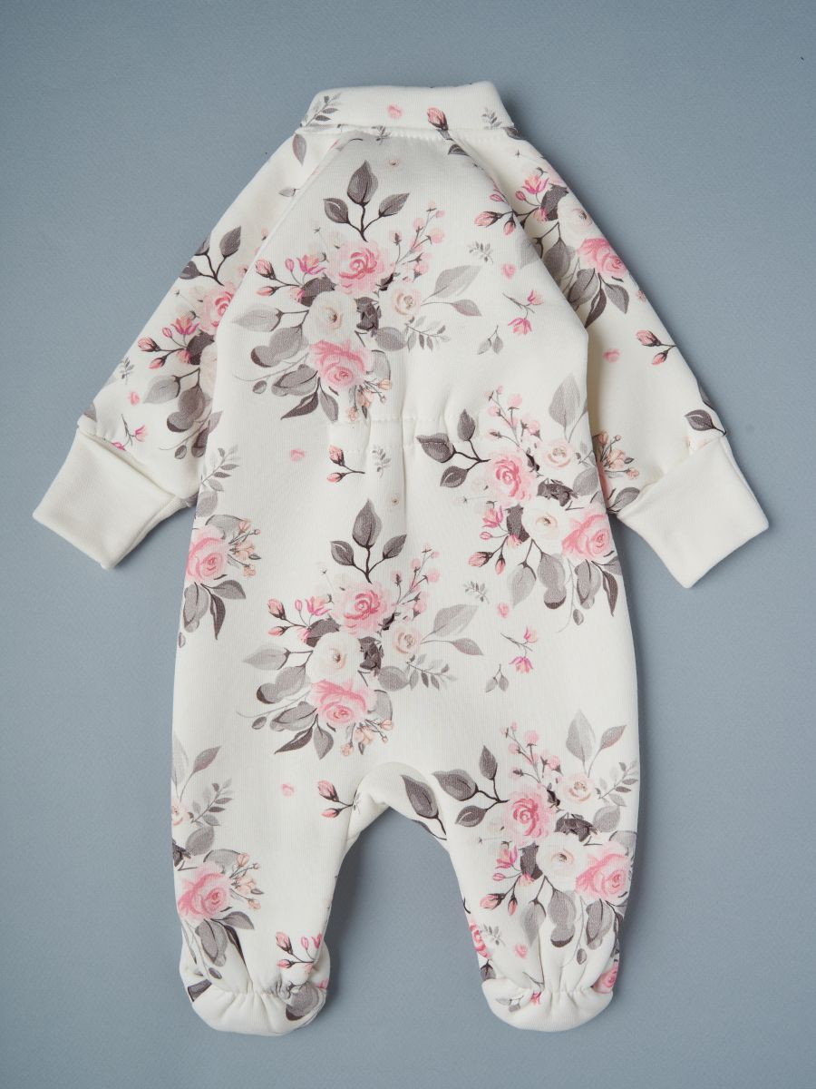 Комбинезон Little Star Цветы на креме со стойкой футер c начёсом 0214 (ЧЗ-мз) кремовый 56