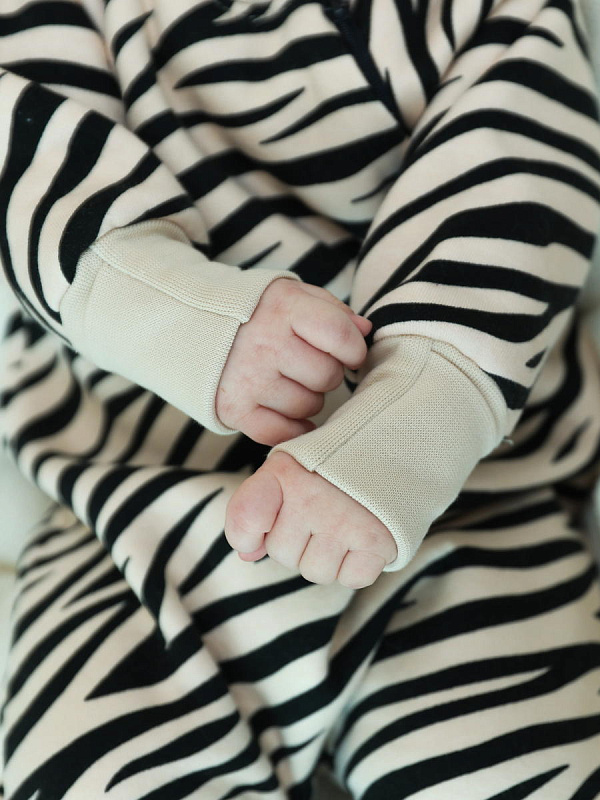 Комбинезон Little Star Зебра из футера с начесом 0214 (ЧЗ-мз) светло-бежевый 74