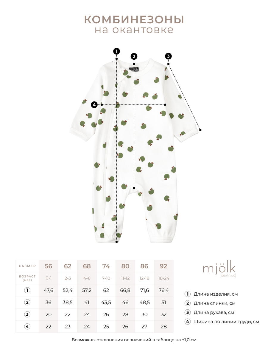Комбинезон Mjolk — это детский нательный комбинезон на молнии с открытой ножкой и окантовкой во всех размерах с 56 по 92, выполненный из плотного и очень мягкого трикотажа. Он станет отличным комбинезоном для новорождённых и на выписку.