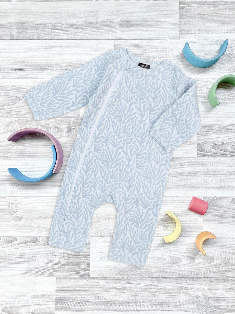 Комбинезон Mjölk [мьёльк] Sleep and Play — классический комбинезон на молнии с открытой ножкой и окантовкой, выполненный из плотного и очень мягкого 100% хлопка.