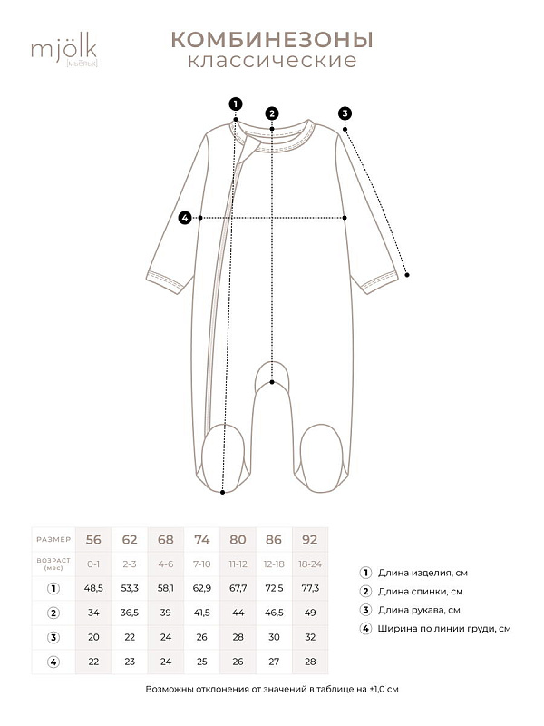Комбинезон Mjölk [мьёльк] Sleep and Play — классический комбинезон на молнии с закрытой ножкой во всех размерах, выполненный из плотного и очень мягкого 100% хлопка.