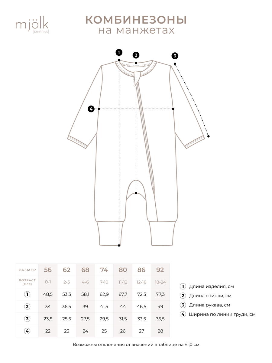 Комбинезон Mjölk [мьёльк] Sleep and Play — классический комбинезон на молнии с открытой ножкой и широкими манжетами, выполненный из плотного и очень мягкого 100% хлопка.