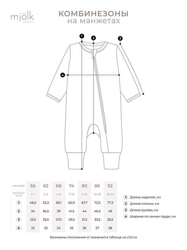 Комбинезон Mjolk — это детский нательный комбинезон на молнии с открытой ножкой и широкими манжетами во всех размерах с 56 по 92, выполненный из плотного и очень мягкого трикотажа. Он станет отличным комбинезоном для новорождённых и на выписку.