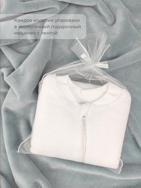 Комбинезон для детей изготовлен в Санкт-Петербурге вручную, он подойдёт для носки круглый год в качестве одежды для новорождённых, мягкой пижамки, дышащей поддевы или самостоятельной одежды. Бережно упакованный в фатиновый мешочек, комбинезон Mjolk станет полезным подарком родным и близким!
