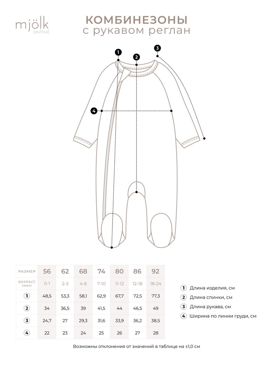 Комбинезон Mjölk [мьёльк] Sleep and Play — классический комбинезон на молнии с закрытой ножкой во всех размерах, выполненный из плотного и очень мягкого 100% хлопка.