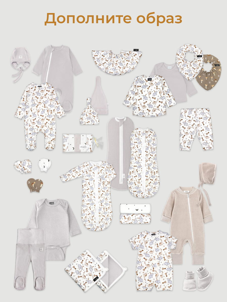 Комбинезон Mjolk — это детский нательный комбинезон на молнии с закрытой ножкой во всех размерах с 56 по 92, выполненный из плотного и очень мягкого трикотажа. Он станет отличным комбинезоном для новорождённых и на выписку.
