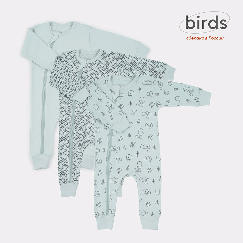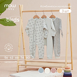 Комбинезон MowBaby Birds на молнии 3-шт 1282 Blue 68