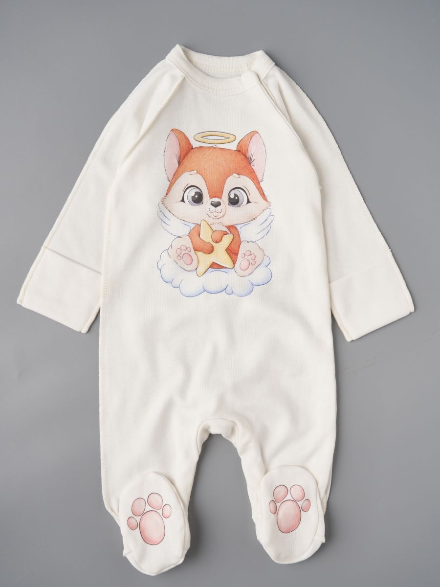 Комбинезон на кнопках интерлок Little Star лисенок-ангел на облачке, крем 74