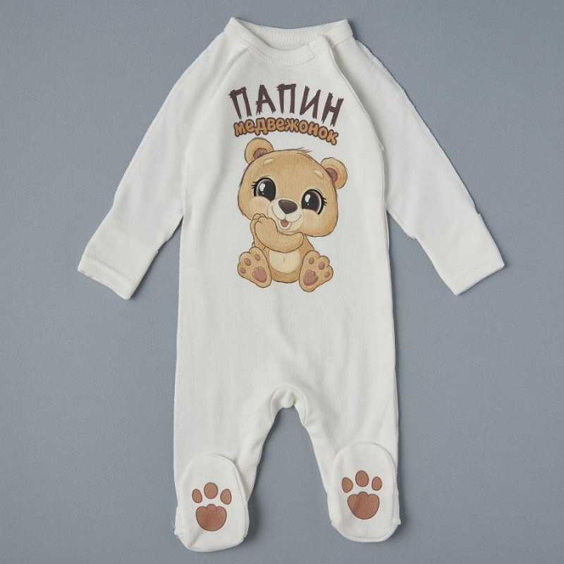 Комбинезон на кнопках интерлок Little Star папин медвежонок, крем 68