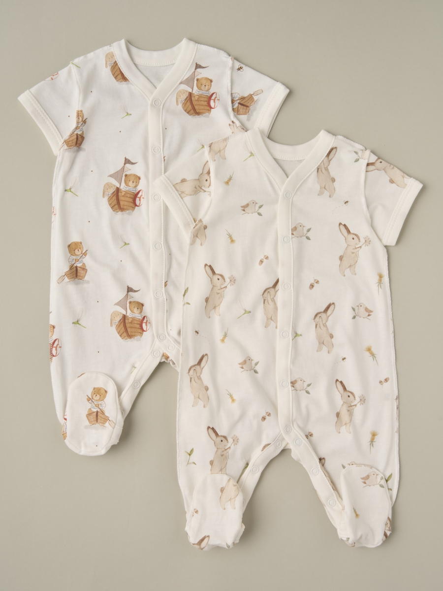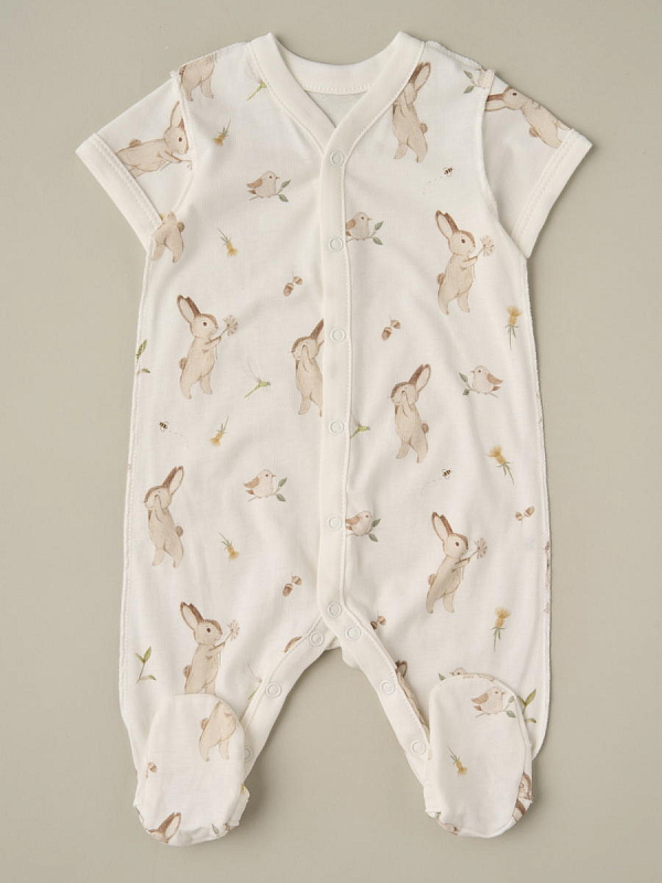 Комбинезон на кнопках короткий рукав Little Star Мишки и Зайки 2 шт 7062 (ЧЗ-мз) крем/крем 62
