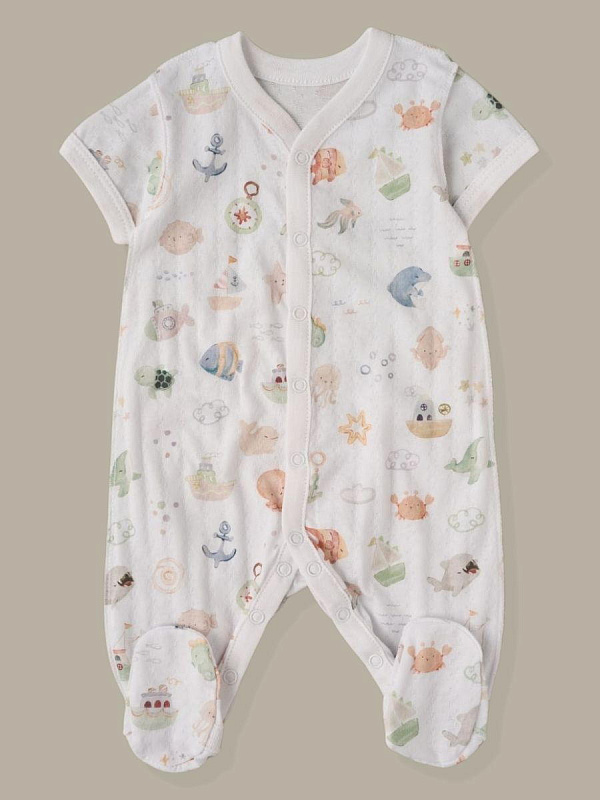 Комбинезон на кнопках короткий рукав Little Star Морское царство 2 шт 7062-2 (ЧЗ-мз) белый/мятный 56Нет оценокХарактеристики