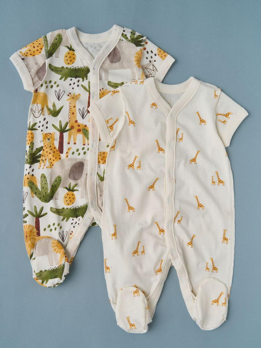 Комбинезон на кнопках короткий рукав Little Star Сафари и жирафы 2 шт 7062 (ЧЗ-мз) крем 62