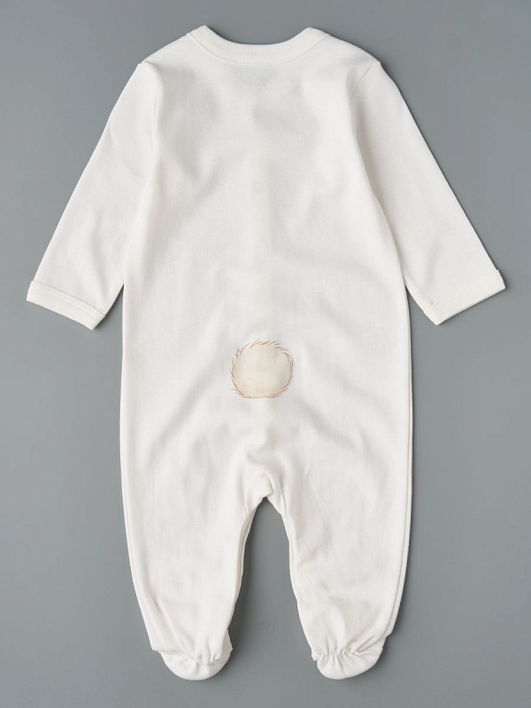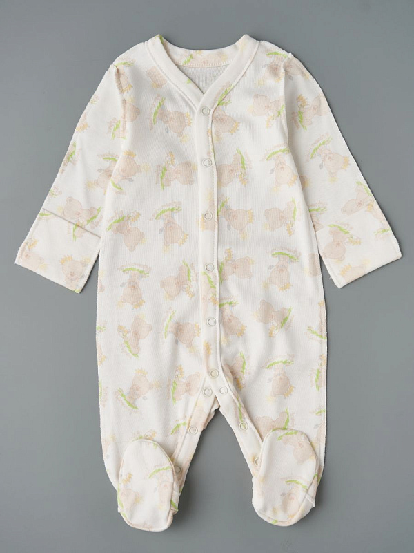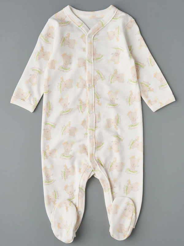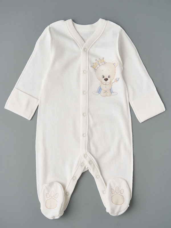 Комбинезон из нежного трикотажа на кнопках с принтом . Удобная модель, позволит легко и быстро переодевать малыша. Кнопки расположены по центру, сверху донизу. Также, для удобства смены подгузника, мы предусмотрели кнопочки и между ножек. Ножки закрыты в размерах 44-80 Швы наружу и антицарапки в размерах 44-62