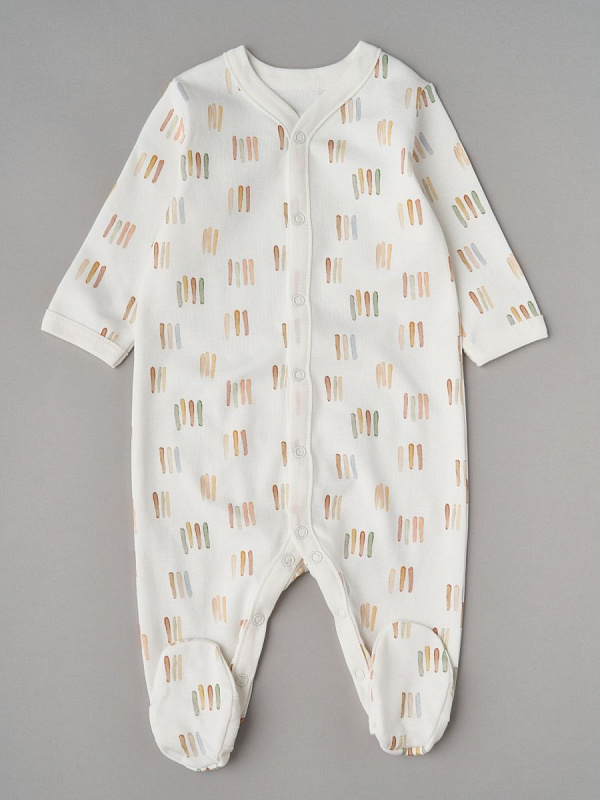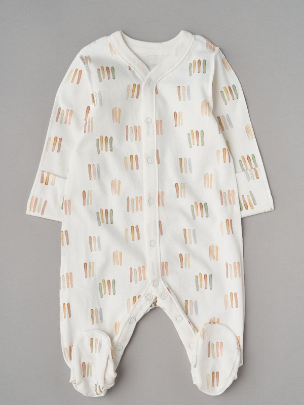 Комбинезон из нежного трикотажа на кнопках с принтом . Удобная модель, позволит легко и быстро переодевать малыша. Кнопки расположены по центру, сверху донизу. Также, для удобства смены подгузника, мы предусмотрели кнопочки и между ножек. Ножки закрыты в размерах 44-80 Швы наружу и антицарапки в размерах 44-62