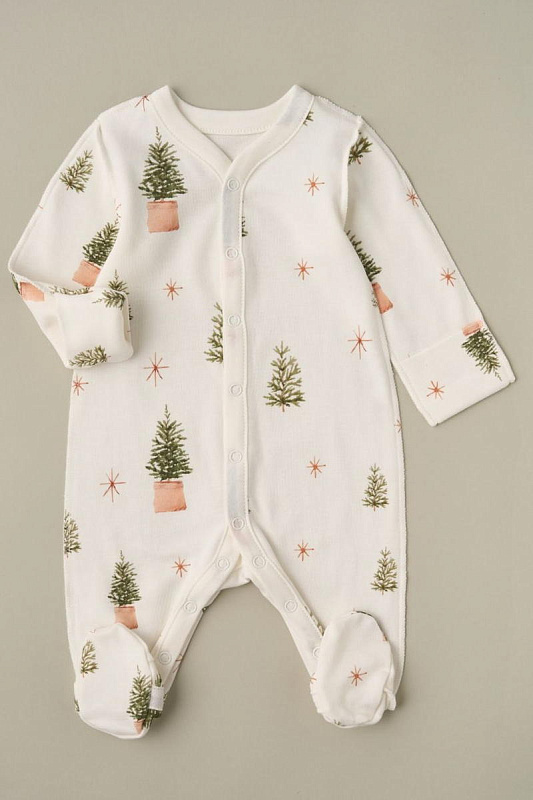 Комбинезон на кнопках Little Star 30032 елочки, крем 74