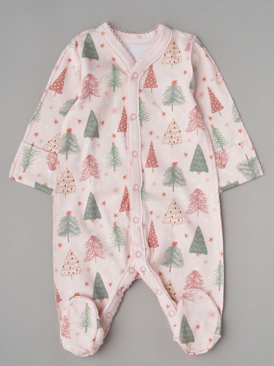 Комбинезон на кнопках Little Star 30032 елочки со звездочками на розовом, розовый 74