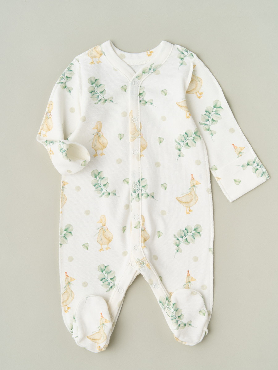 Комбинезон на кнопках Little Star 30032 гуси с веточками эвкалипта, крем 74