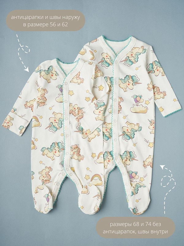 Комбинезон на кнопках Little Star Единороги 30032 (ЧЗ-мз) крем 68