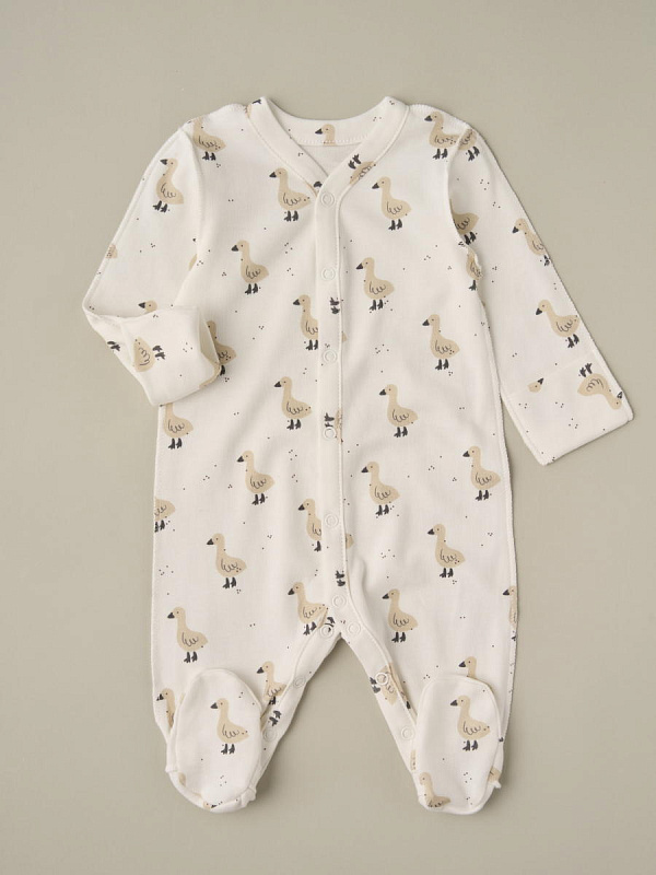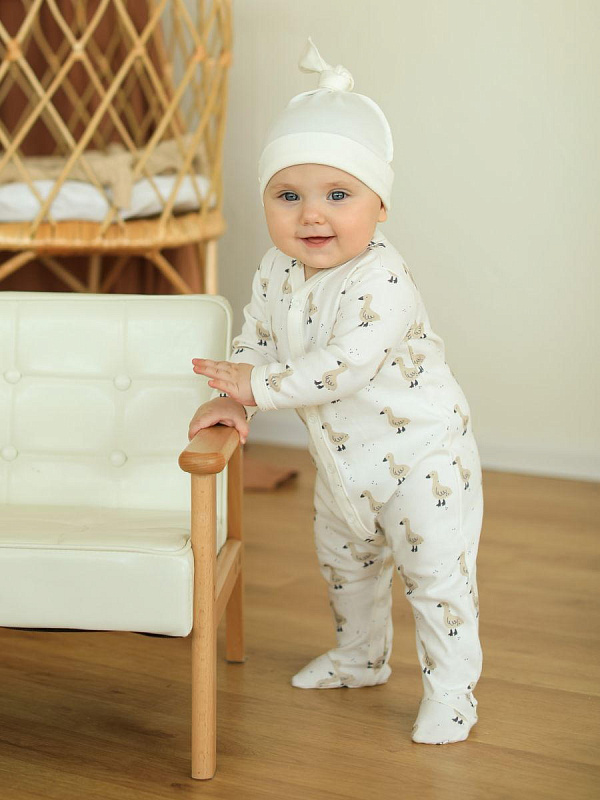 Комбинезон на кнопках Little Star Гуси 30032 (ЧЗ-мз) крем 74