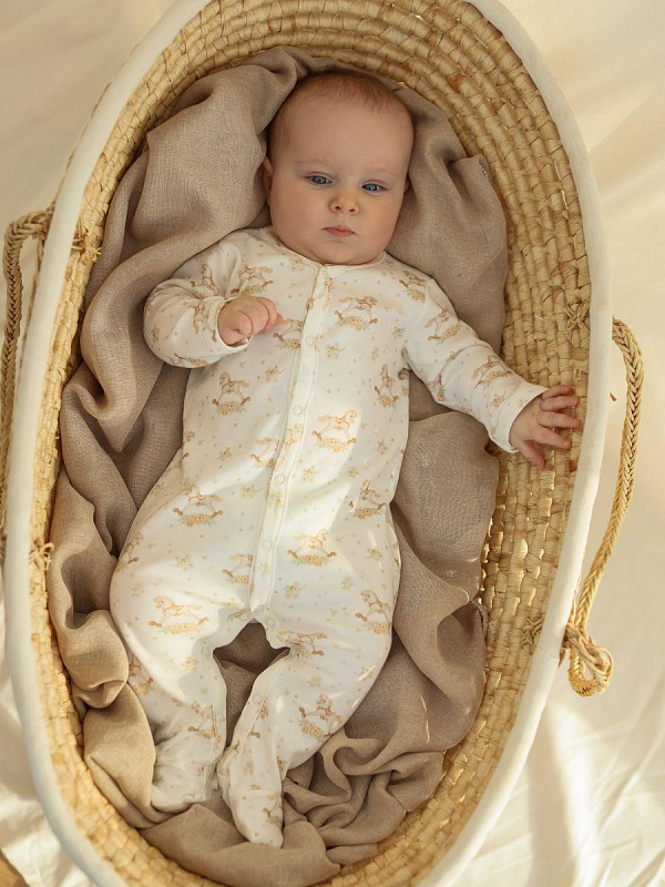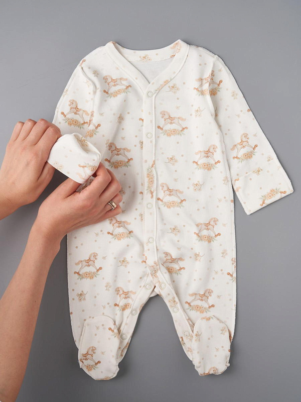 Комбинезон на кнопках Little Star Лошадки с цветочками 30032 (ЧЗ-мз) крем 62Нет оценокХарактеристики