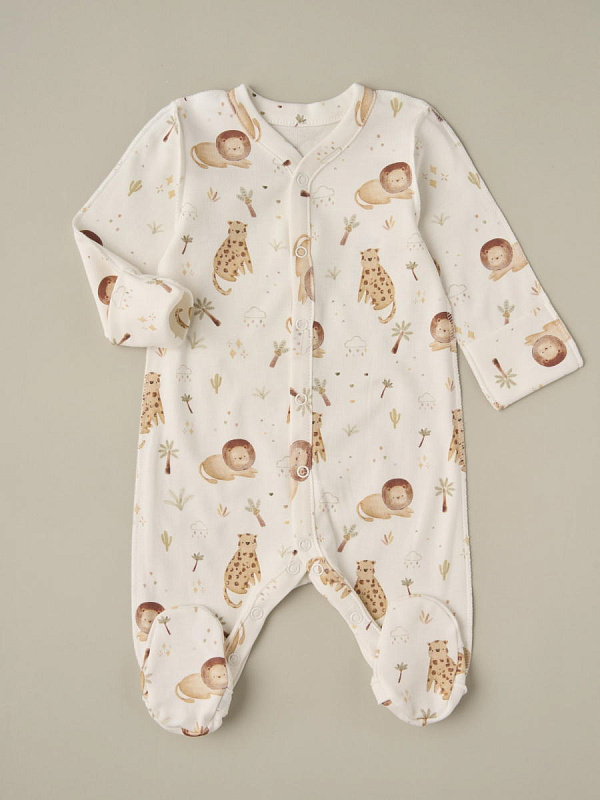 Комбинезон на кнопках Little Star Львы и леопарды 30032 (ЧЗ-мз) крем 62