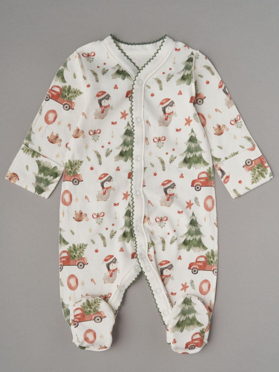 Комбинезон на кнопках Little Star Пингвины и елочки 30032 (ЧЗ-мз) крем 74
