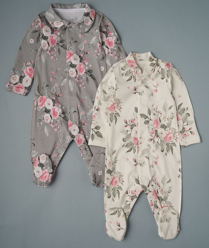 Комбинезон на кнопках Little Star Цветы 2 шт. 31031 серый/белый 56