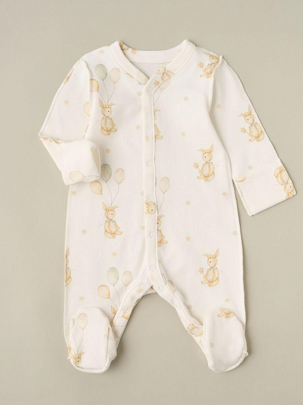 Комбинезон на кнопках Little Star Зайчики с шариками 30032 (ЧЗ-мз) крем 62